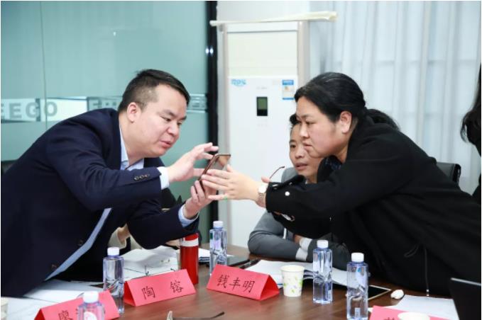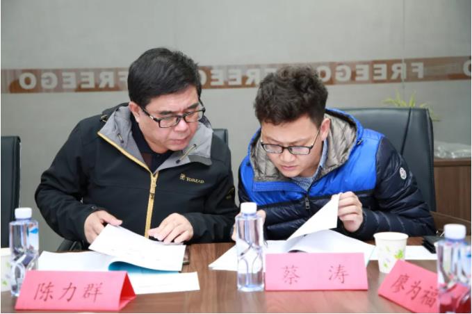 陳力群研發(fā)總監(jiān)和蔡濤副常務(wù)院長研究細節(jié)