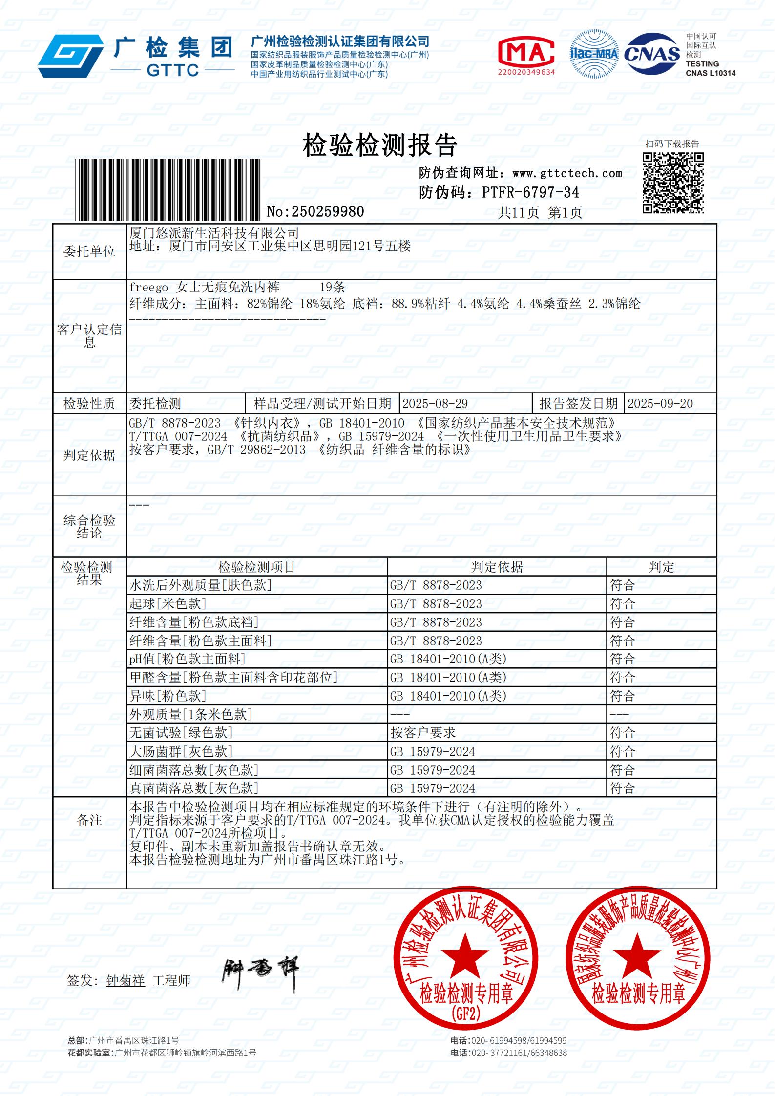 Freego無(wú)痕一次性女士?jī)?nèi)褲?rùn)z測(cè)報(bào)告