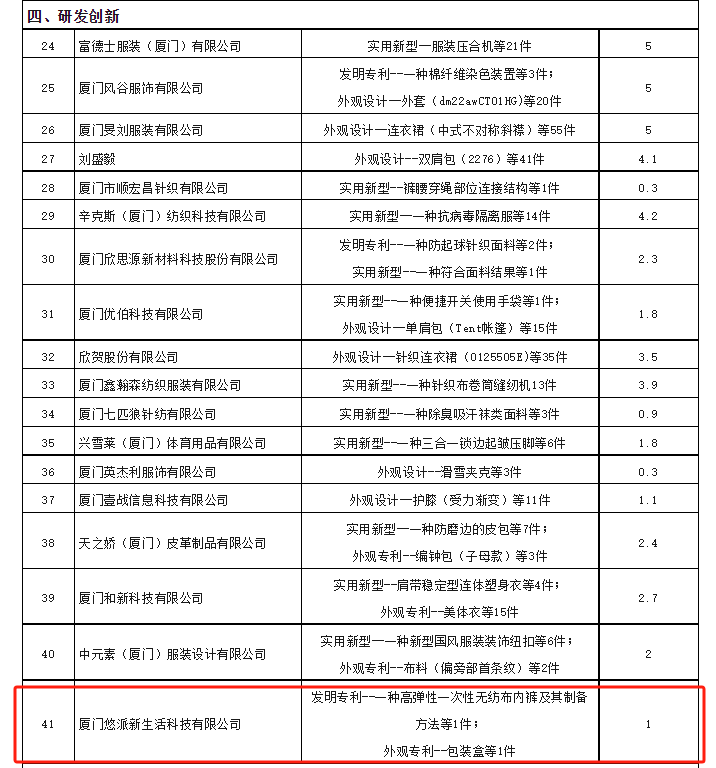 In the "R&D and Innovation" section, our company was awarded a 10,000-yuan grant for two patents: one invention patent titled "A High-Elastic Disposable Nonwoven Underpant and Its Preparation Method", and one appearance design patent for "Packaging Box".